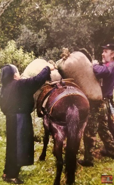 Πρωϊνό εγερτήριο λοιπόν πολύ πριν χαράξει…!!! Έπρεπε με το χάραμα, να είμαστε στο χωράφι…Οι περισσότεροι κουβάλαγαν τα λιόπανα, τσουβάλια, ραβδιά, πριόνια (τα μόνα εργαλεία τότε), το φαγητό και το νερό για το χωράφι , με τα γαϊδούρια ή τα μουλάρια. Άλλοι όμως τα κουβάλαγαν στην πλάτη , σε δρόμους μακρινούς και δύσβατους…