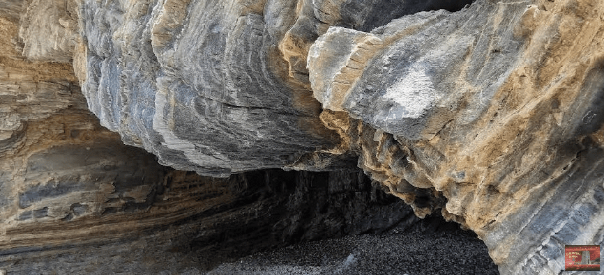 Η παραλία φύλαγε μια ακόμη έκπληξη: ένα τεράστιο σπήλαιο στα δυτικά της, ένα φυσικό καταφύγιο από τον καυτό ήλιο. Εξερευνώντας το, βρήκαμε μια μεγαλειώδη είσοδο και ένα βάθος που χανόταν στο σκοτάδι, για να κλείσει όμως απότομα.