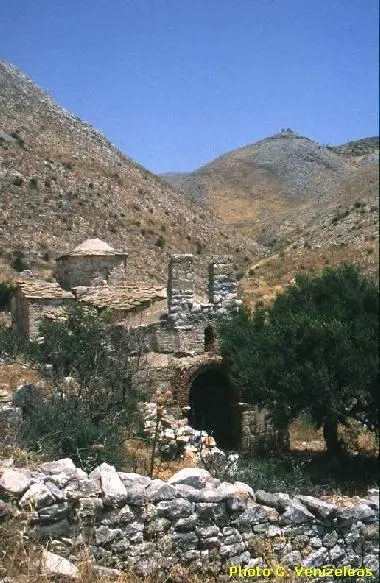 Μια επίσκεψη στη μικρή εκκλησία της Παναγίας, με τις ελάχιστες σωζόμενες αγιογραφίες, προσέφερε μια στιγμή περισυλλογής. Το καλντερίμι ξεκινούσε δίπλα από ένα φραγκοπερίβολο (χωράφι με φραγκοσυκιές) και ανέβαινε στη δεξιά πλευρά μιας μικρής χαράδρας με μεγάλη κλίση. Και στις δύο πλευρές της χαράδρας, ανάμεσα σε πέτρες, φύτρωναν αραιά θυμάρι, σχοίνα, αγριοκρεμμύδες, λαγόχορτα, σκόλυμοι και πλήθος αγριολούλουδων. Τα ανθισμένα γαϊδουράγκαθα με τα μωβ άνθη ήταν παντού, προσελκύοντας μέλισσες, ακρίδες, πεταλούδες και άλλα έντομα, δημιουργώντας ένα ζωντανό, πολύχρωμο τοπίο.