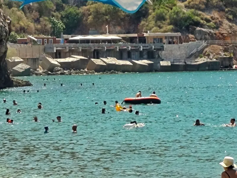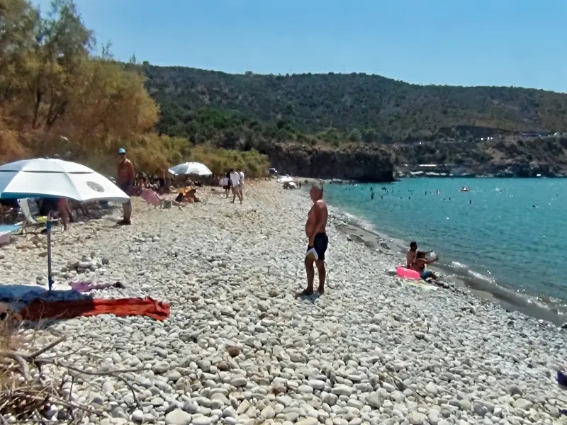 Η ίδια η παραλία είναι μια ευχάριστη έκπληξη. Αν και η ακτή είναι στρωμένη με βότσαλο, μόλις μπείτε στη θάλασσα, θα ανακαλύψετε έναν αμμώδη βυθό που την καθιστά ιδανική για κολύμπι. Τα κρυστάλλινα, γαλαζοπράσινα νερά είναι μια πρόσκληση για δροσιά και χαλάρωση, μακριά από τη φασαρία των πολυσύχναστων παραλιών.